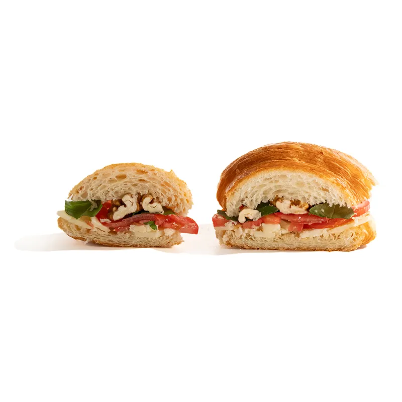 کروسان ساده، پنیر گودا، گوجه، گردو، ریحان ایتالیایی، مناسب برای یک نفر