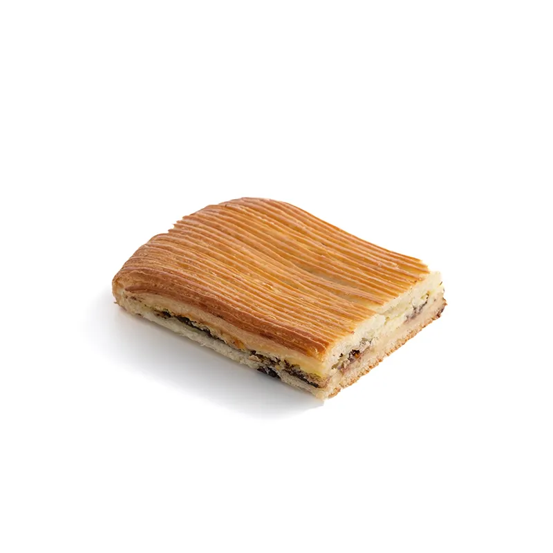 مناسب برای یک نفر. اندازه با طول و عرض حدودأ 11 سانتی متر. دو لایه خمیر ھزار لای که با کرم پتیسیر وانیل و شکلات تلخ چیپسی پر میشود.