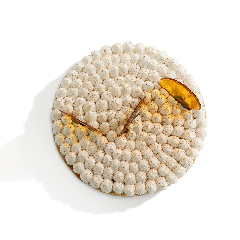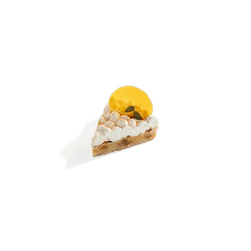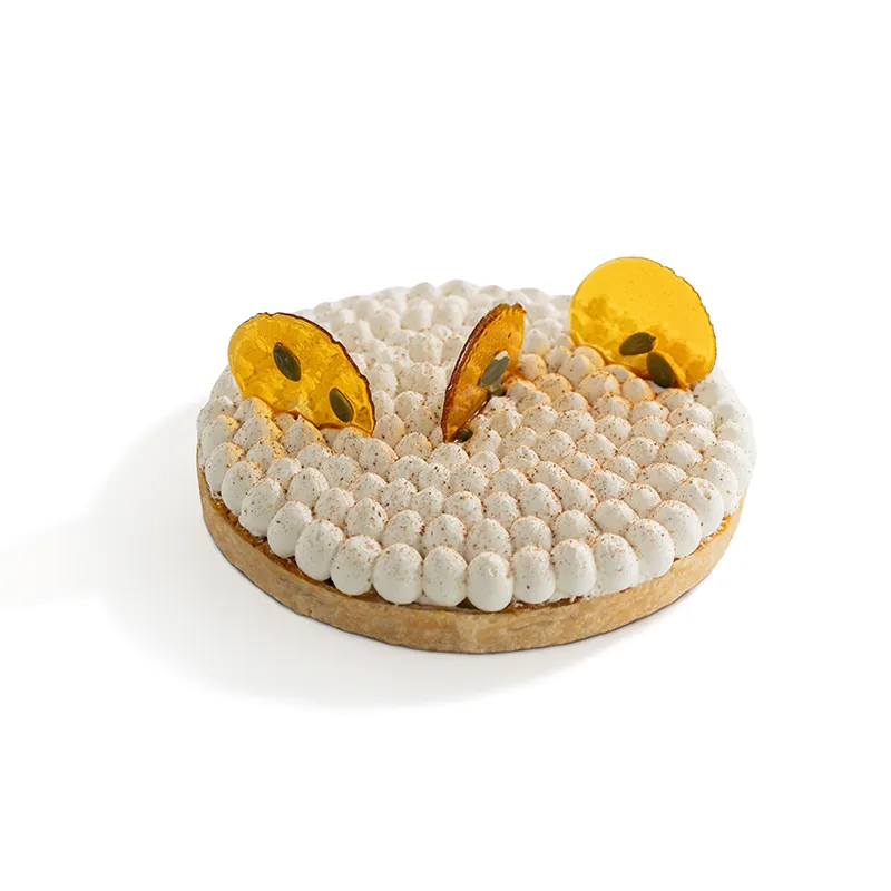 نان تارت ترد و نمکی پر شده با کرم کدوحلوایی و سیب کاراملایز شده که روی آن با خامه سبک شده و پودر دارچین پوشانده شده و با آبنبات و دانه های رست شده ی کدو حلوایی تزیین می شود. قطر حدودأ 18 سانتی متر. مناسب برای 5 تا 6 نفر