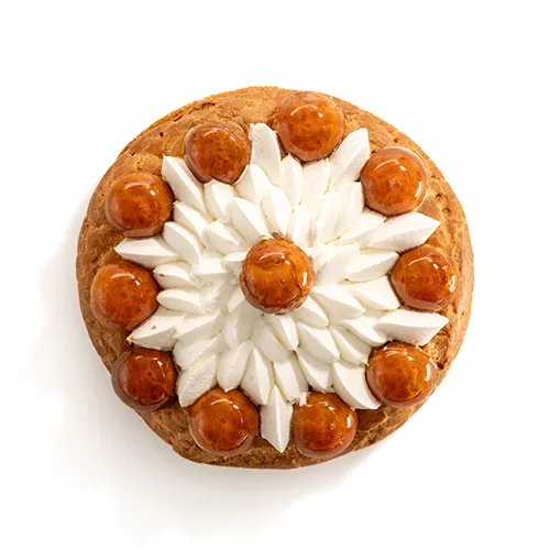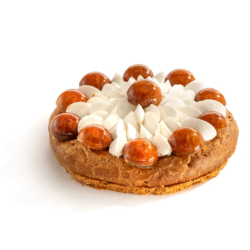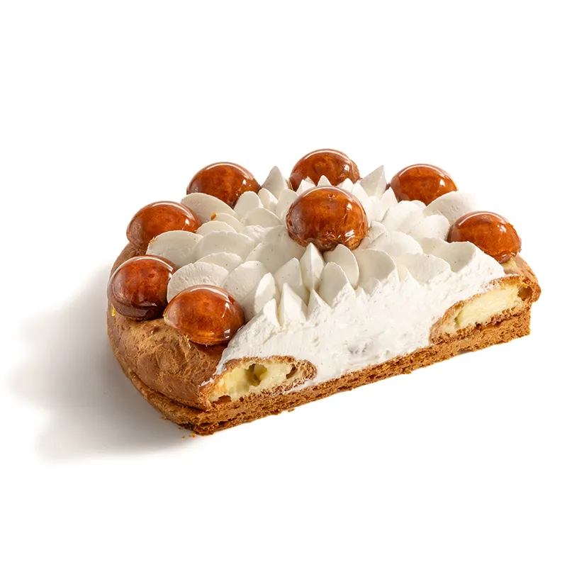 نان هزارلای تهیهشده با کره که روی آن نان شوی پر شده با کرم پتیسیر وانیل قرار میگیرد و با خامه سبک طعمدارشده پوشانده شده و در انتها با شوی کاراملی پر شده با کرم پتیسیر وانیلی تزئین میشود.مناسب برای 6 تا 8نفر. اندازه 18.5×18.5