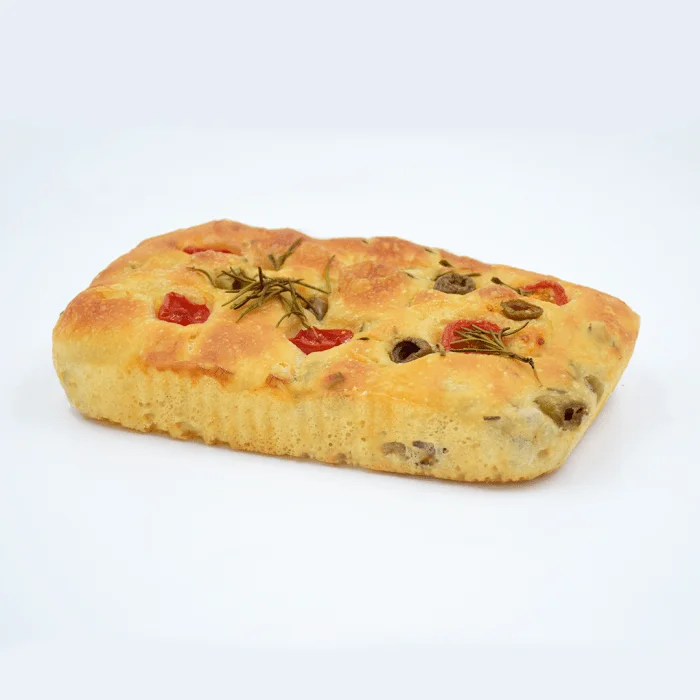 فوکاچیا خمیر ترش با زیتون، گوجه گیلاسی و رزماری